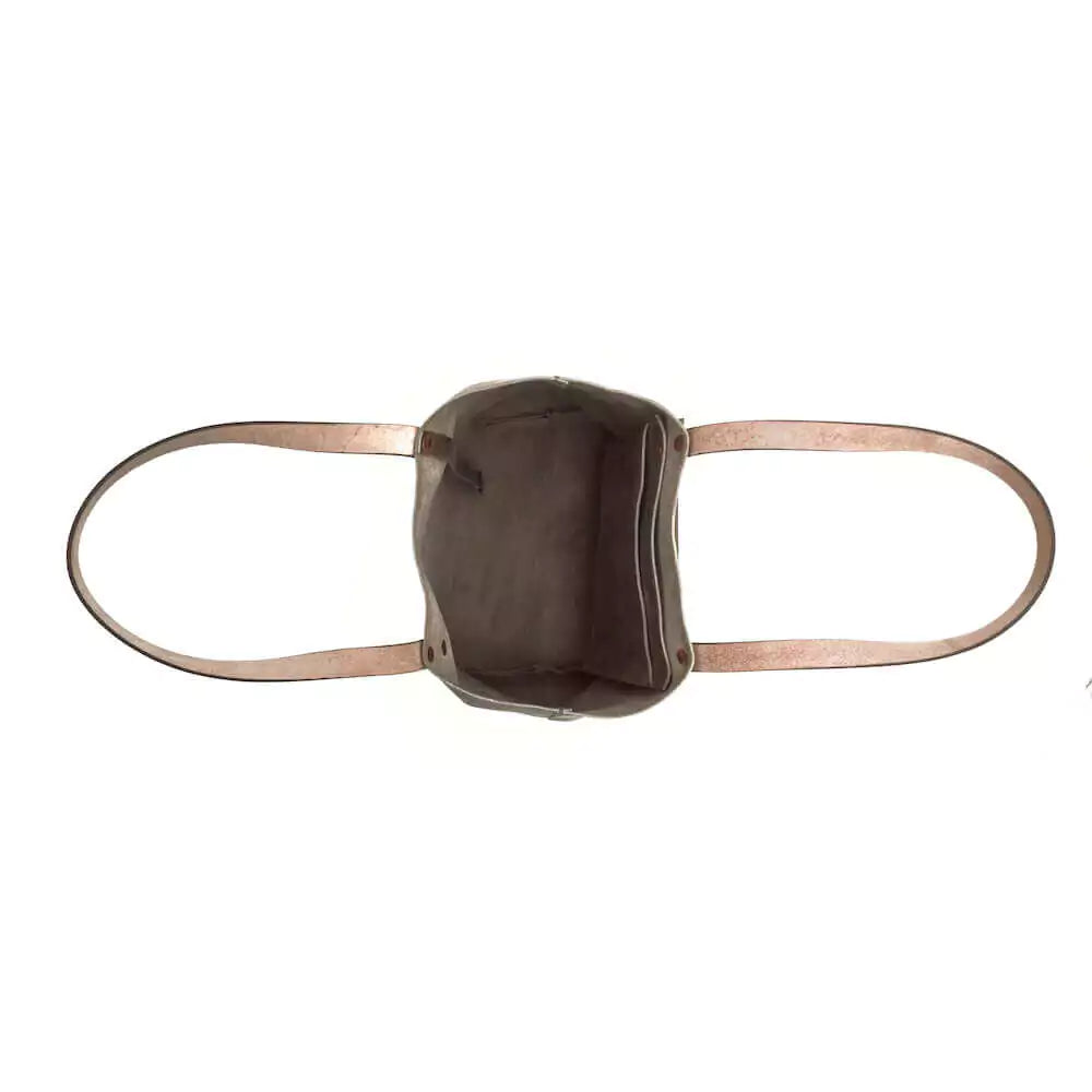 Inside, you'll find the soft, natural suede of the leather’s backside, complemented by beautiful solid copper rivets for a touch of refinement.