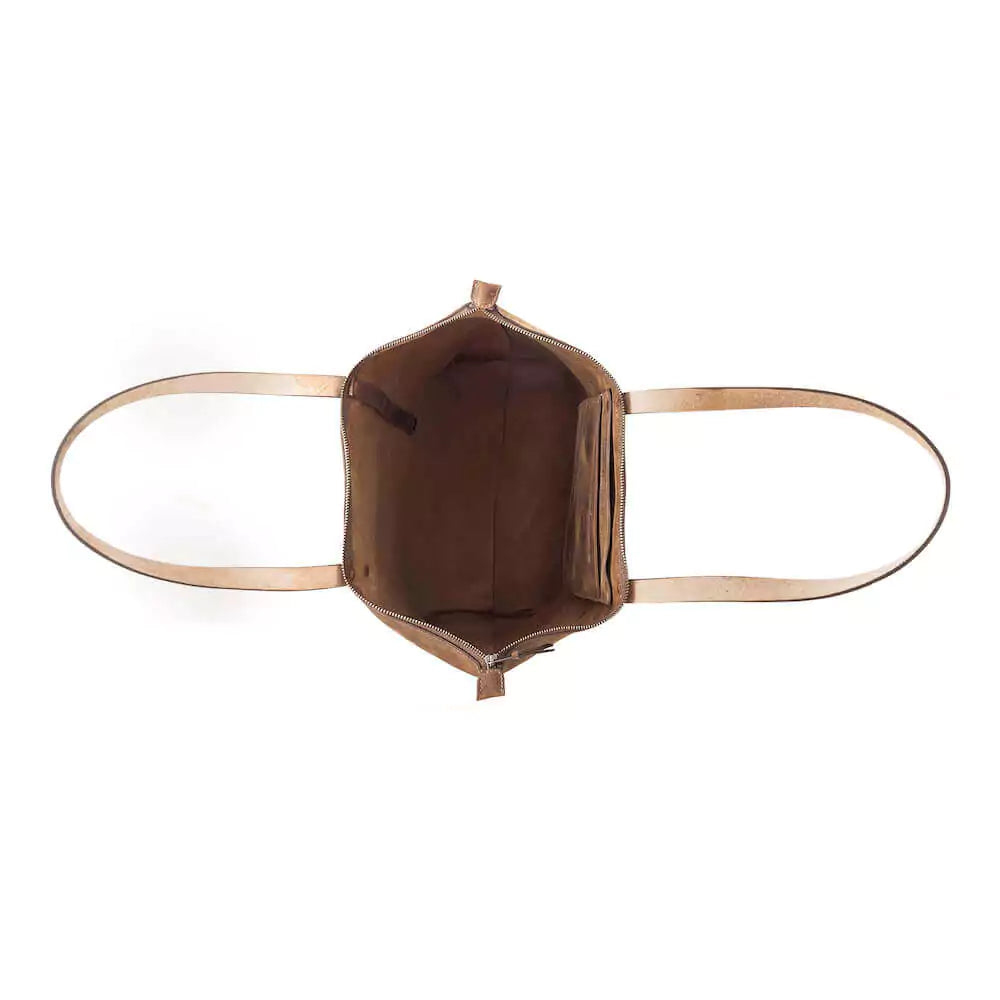 Inside, the soft, natural suede underside of the leather gives it a dreamy, buttery feel, while the solid copper rivets add just the right amount of wow. It's practical, yes, but also just the right amount of fabulous.