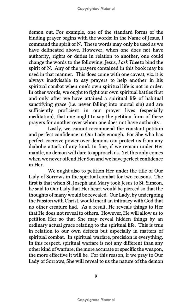 Prayers for use by the laity in waging spiritual warfare from the public domain and the Church's treasury.