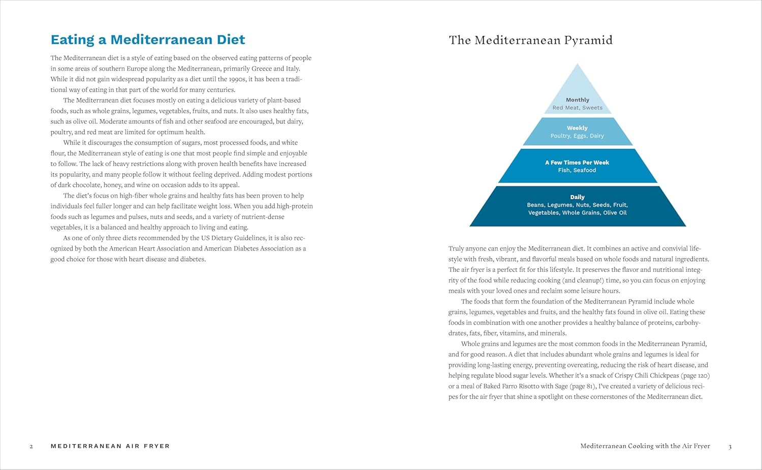 From breakfast frittatas and whole-wheat baked goods to seared tuna steaks, the Mediterranean Air Fryer has all meals covered. Along with an overview of the health benefits of the Mediterranean diet, you’ll learn how the air fryer works, what cooking essentials to keep in the kitchen, and tips for cleaning and care. Sticking with a healthy Mediterranean lifestyle has never been easier or tastier.