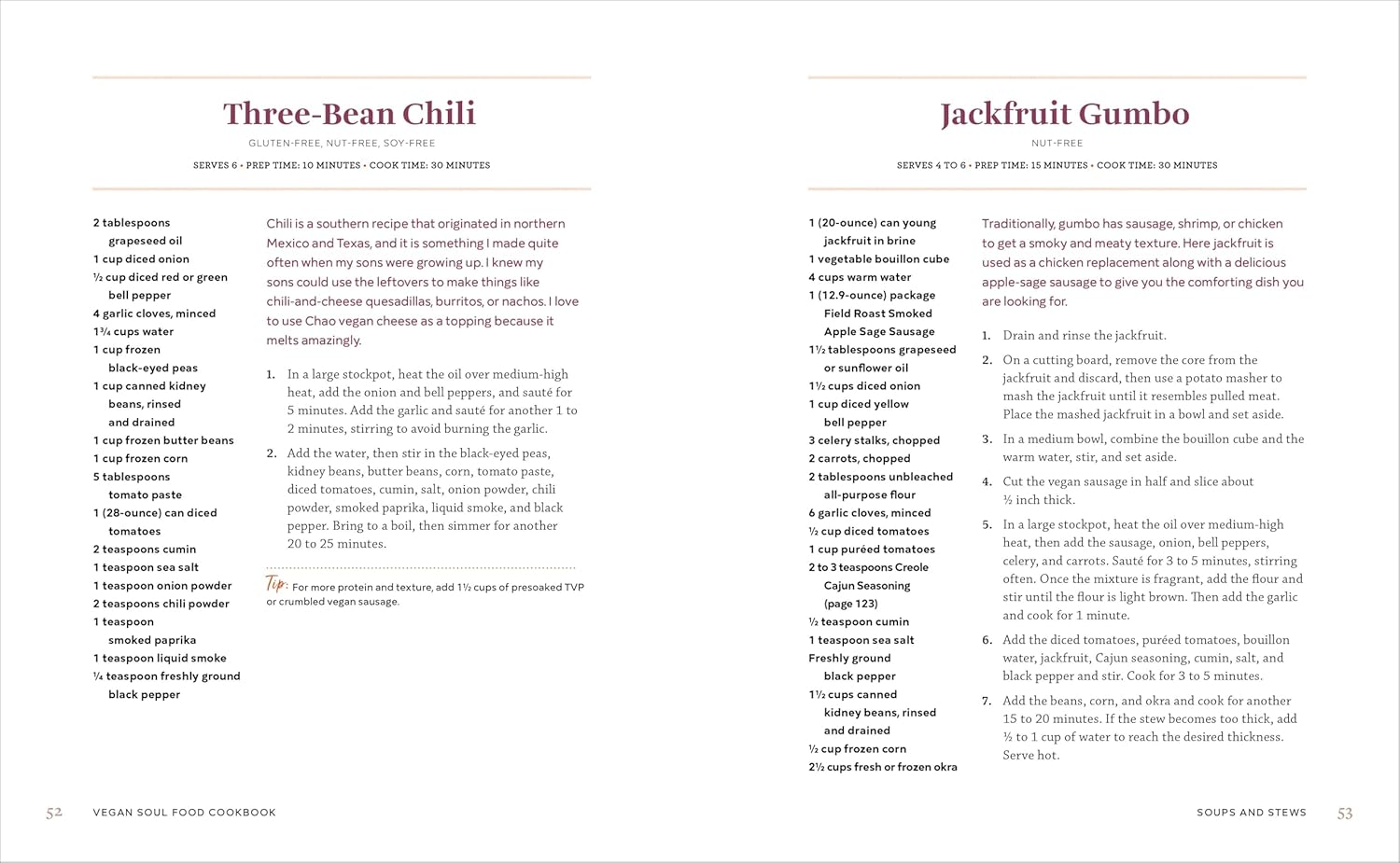 Along with Nadira’s top recipes, this soul food vegan cookbook features: