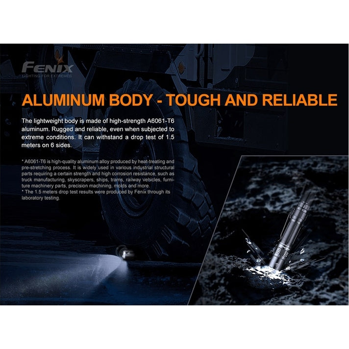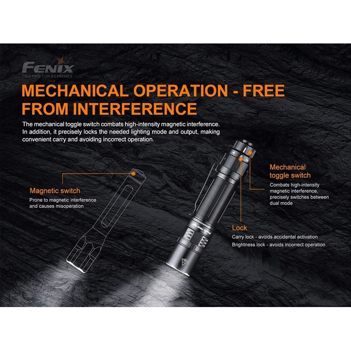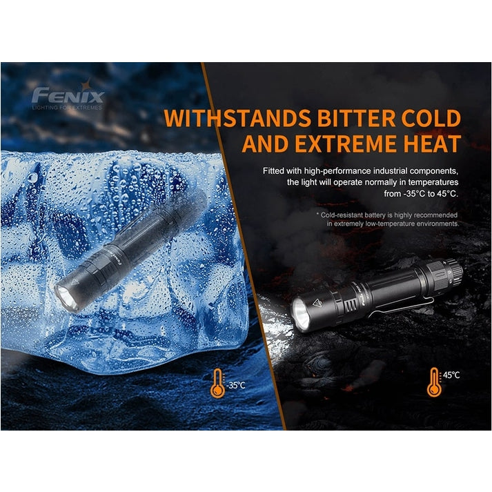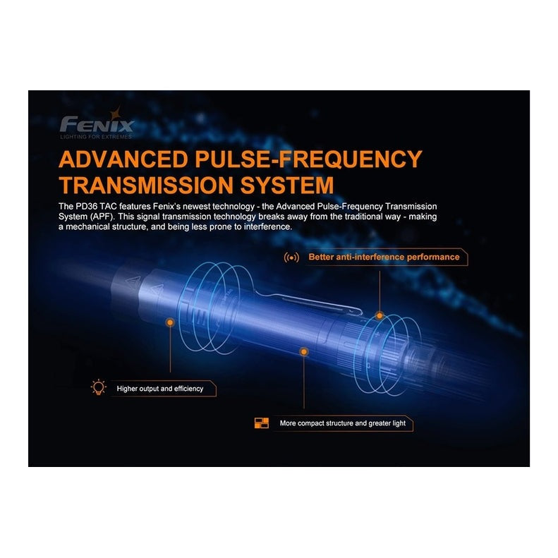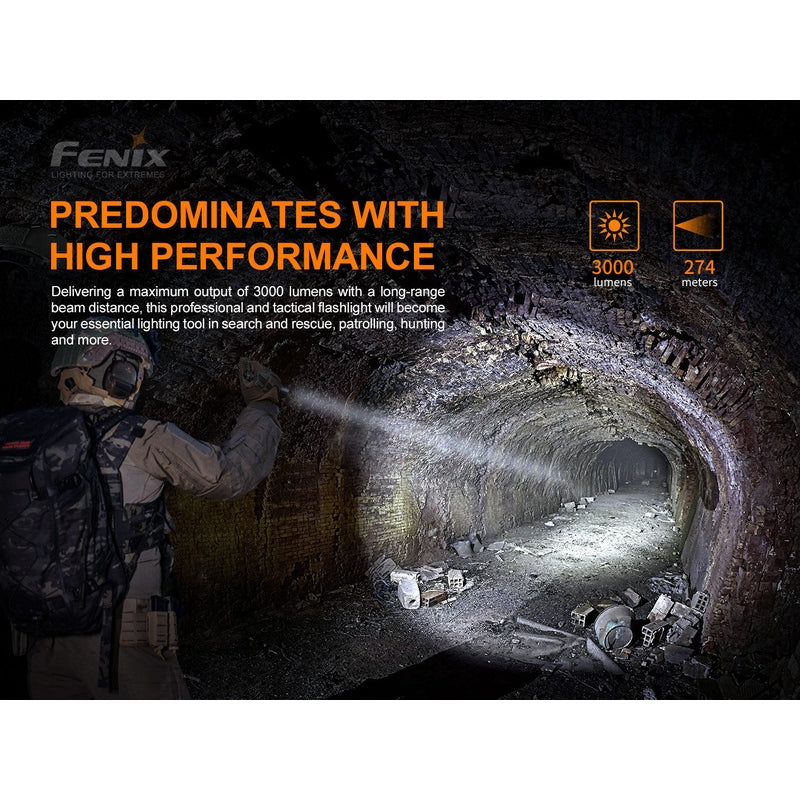 At just 5.5 inches and pocket-clip enabled, the Fenix PD36 TAC flashlight offers amazing power and performance in a portable package. Impressive 3000 lumens of light and 898 feet of beam distance powered by a single Fenix ARB-L21-5000U USB Type-C rechargeable battery let you take on the night. Fast recharge in 4 hours and with a maximum run time of 160 hours on eco mode, this light is engineered for the long haul. Constructed from impact-resistant A6061-T6 aluminum alloy with double springs for battery protection, this EDC and tactical powerhouse stands up to any task. Expedite your mission with a tactical switch, mechanical toggle switch and two user-friendly operation modes. Get the dependable, dynamic lighting you need - go with the Fenix PD36 TAC flashlight.