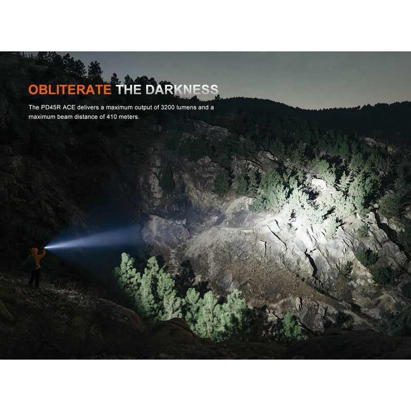 The Fenix PD45R ACE is a powerhouse tactical flashlight designed for professionals who demand performance and reliability. With an incredible 3,200-lumen maximum output and a 410-meter beam distance, this light delivers outstanding visibility for any situation. The innovative mode selection ring allows for quick and precise brightness adjustments, while the mechanical tail switch ensures instant activation when it matters most.