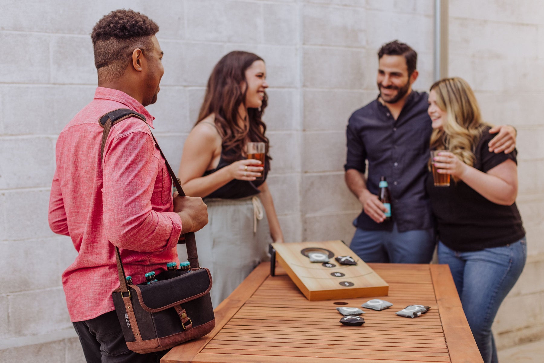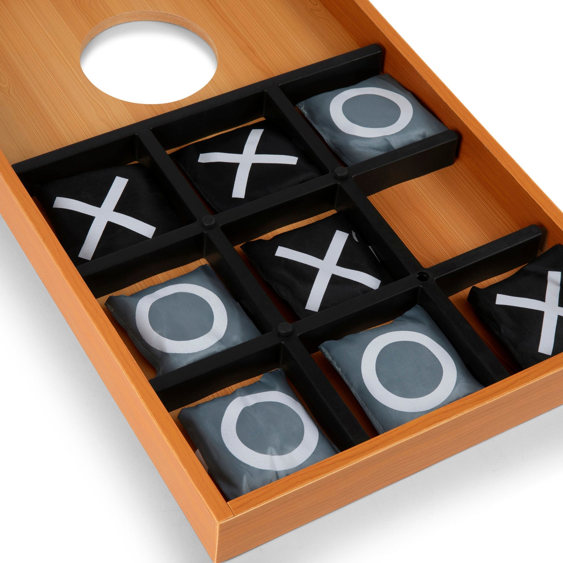 Meet me in the yard - it's going down! Family and friends who play together and stay together with the Picnic Time Mini Bean Bag Throw Game, a double-sided, laminated wood party game board with cornhole on one side and tic-tac-toe on the other. Finally, you can get your game on with the whole family while soaking up that vitamin D. Includes four black bean bags with "X" and four gray bean bags with "O." Easily sets up in ten seconds, and then your tailgate game/picnic enhancer is ready to go. This portable outdoor cornhole game provides hours of fun for adults and kids alike. It's a perfect beach game for the family too!