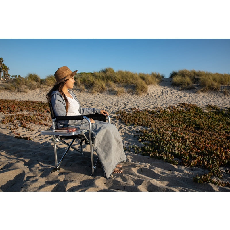 You want a portable picnic blanket for your outdoor lifestyle, the relaxing on the ground part. A travel blanket that can stand up to a serious hike but is so soft you can lay back on this picnic mat for some shuteye in the sun. But your outdoor blanket should also have loops for stakes (stakes not included) in case it’s windy, and any beach blanket absolutely needs to roll up into a bag so it’s portable. It should have a sturdy handle, of course. Don’t forget, a stadium blanket definitely needs to be both truly waterproof and machine washable - heat sealed stitching takes care of that - because small people spill juice and big people spill wine and beer. When it comes to portable picnic blankets, you have a lot of needs. And that’s great, because our All-Purpose Machine Washable Stadium Blanket is there for you. It is, it’s right there in your trunk, ready to go wherever you happen to be headed, looking stylish in solid, versatile colors that never clash with your game day jersey or picnic attire. This is a large blanket on which you can rely.