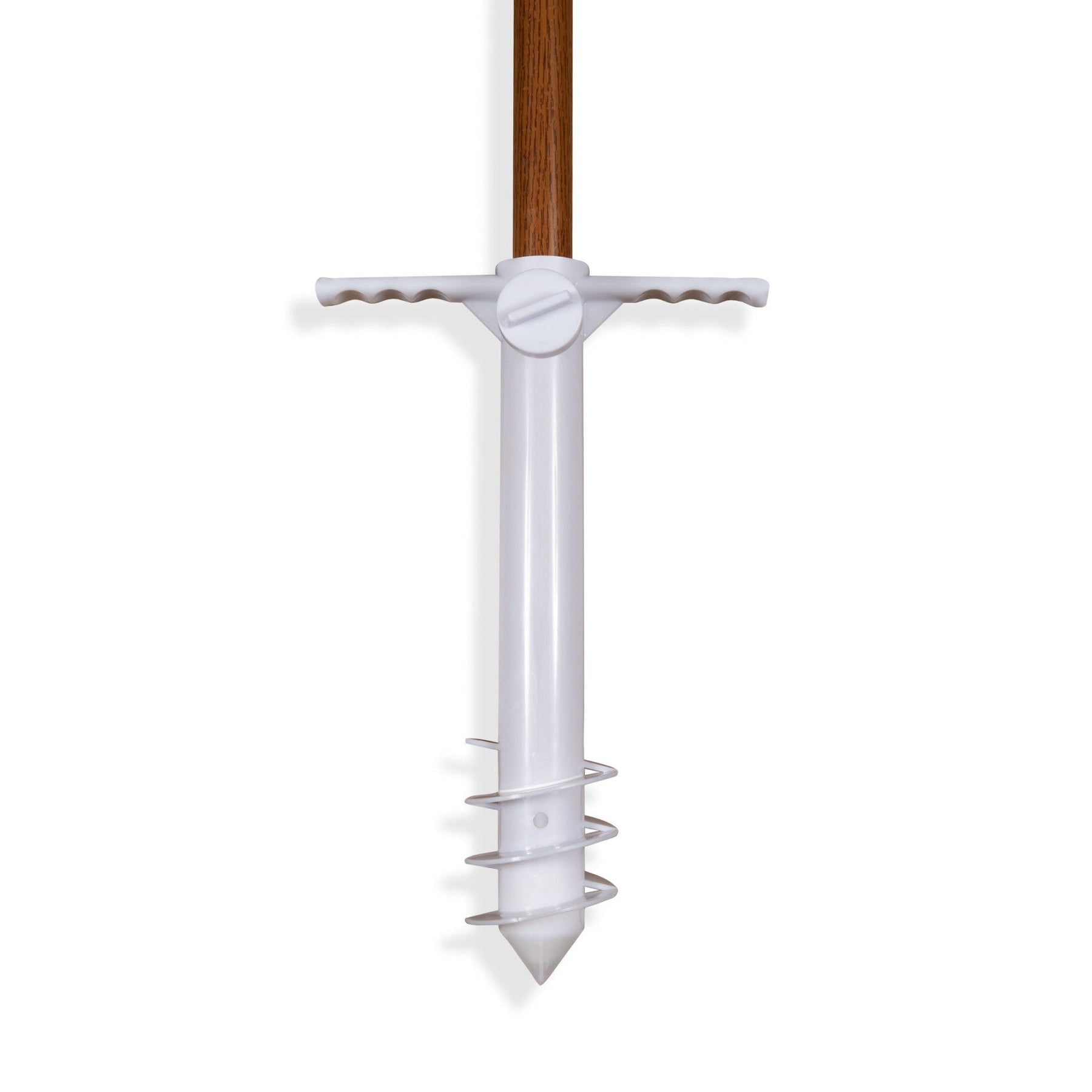 Enjoy the breeze wherever you wander - and forget about worrying your umbrella will blow away with the Beach Umbrella Sand Anchor. This handy, universal size umbrella anchor works with all sizes of beach umbrellas to keep your shady paradise safe and secure, withstanding up to 50 mph winds. Simply screw into the sand, place your umbrella into the holder and tighten the screw to hold the umbrella pole in place. The balmy breezes may blow, but your umbrella is staying right where it’s supposed to!