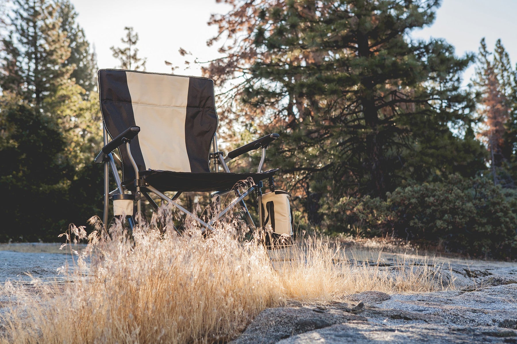 For those of us who are both large and in charge, the Big Bear XXL Camping Chair with Cooler is the gold standard of heavy duty folding chairs. Any size person will enjoy the extra room of this plus size adult beach chair with a steel frame, hinged feet for stability on uneven terrain, durable polyester construction, and zippered security pocket behind the headrest. This XL lawn chair also sports a 9-can-capacity cooler bag and drink holder that can attach to the chair. When it’s time to hit the road, easily pack this heavy duty outdoor folding chair into the drawstring tote with a shoulder strap. Easy to get in and out of and rated for a high weight capacity of 500 lbs, this is the perfect folding chair for big & tall folks to take to the beach, camping, picnicking, and tailgating!