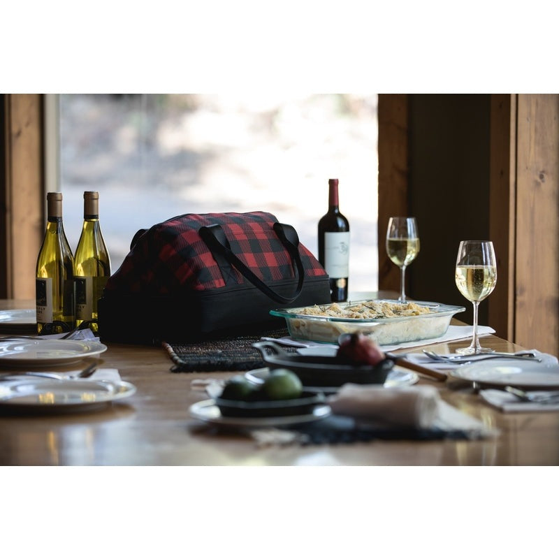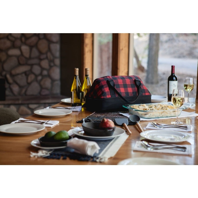 Looking for a smart way to get your beautiful dish to the dinner party, intact? The Potluck Casserole Carrier Tote was made especially for moments like these. This “Lasagna Lugger” has a large insulated compartment to use as a cooler or to store and transport casseroles up to 300 degrees Fahrenheit. There’s additionally a spacious, non-insulated top compartment for serving utensils or other shelf-stable food items. Large handles make it easy to transport your casserole upright, two elastic loops at the back hold one large serving utensil (not included), and a framed window slot for your identification card ensures your casserole bag will make it back to your kitchen. Fitting any 9 by 13 inch casserole or pyrex dish, this premium casserole carrier gets your dinner party masterpiece delivered to the buffet in style. This tote is an essential piece of any good potluck party.