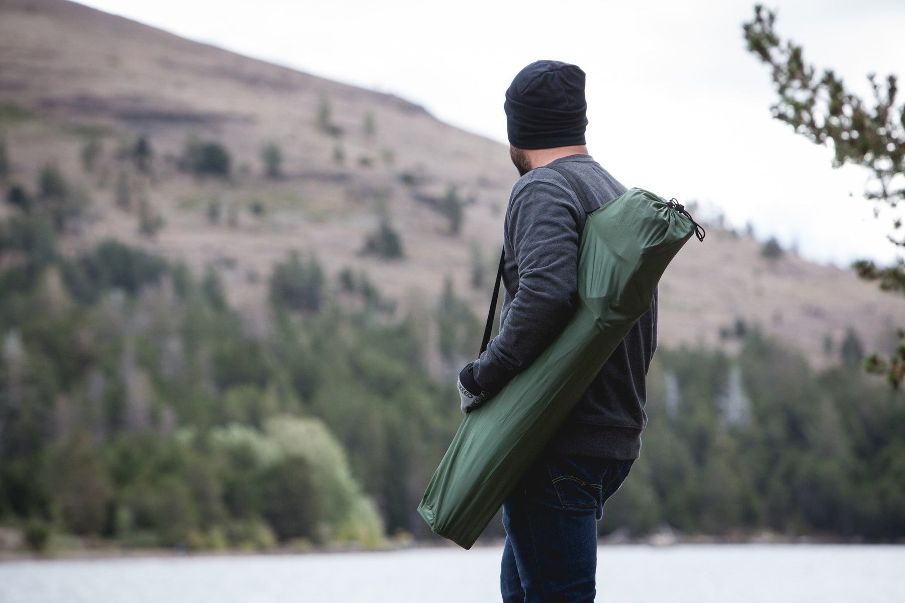 Spend more time sun-gazing, star-gazing, and straight up relaxing with the no-fuss PTZ Camp Chair, your go-to portable chair with a simple and quick set-up design. This folding beach chair features a natural recline and a mesh drink holder in the right armrest for a deluxe seat in the great outdoors. With a sturdy frame that folds into a drawstring carrying bag with shoulder strap, this camping chair transports to the park, beach, picnic, campsite, backyard and more with ease. Wherever you go, your trusty PTZ Camp Chair can easily join in the fun and provide an ideal place to kick back and relax. This portable folding chair is a true chameleon - a lawn chair, a camping chair, a beach chair, or a good ol' sitting-on-your-porch-watching-the-world-go-by chair!