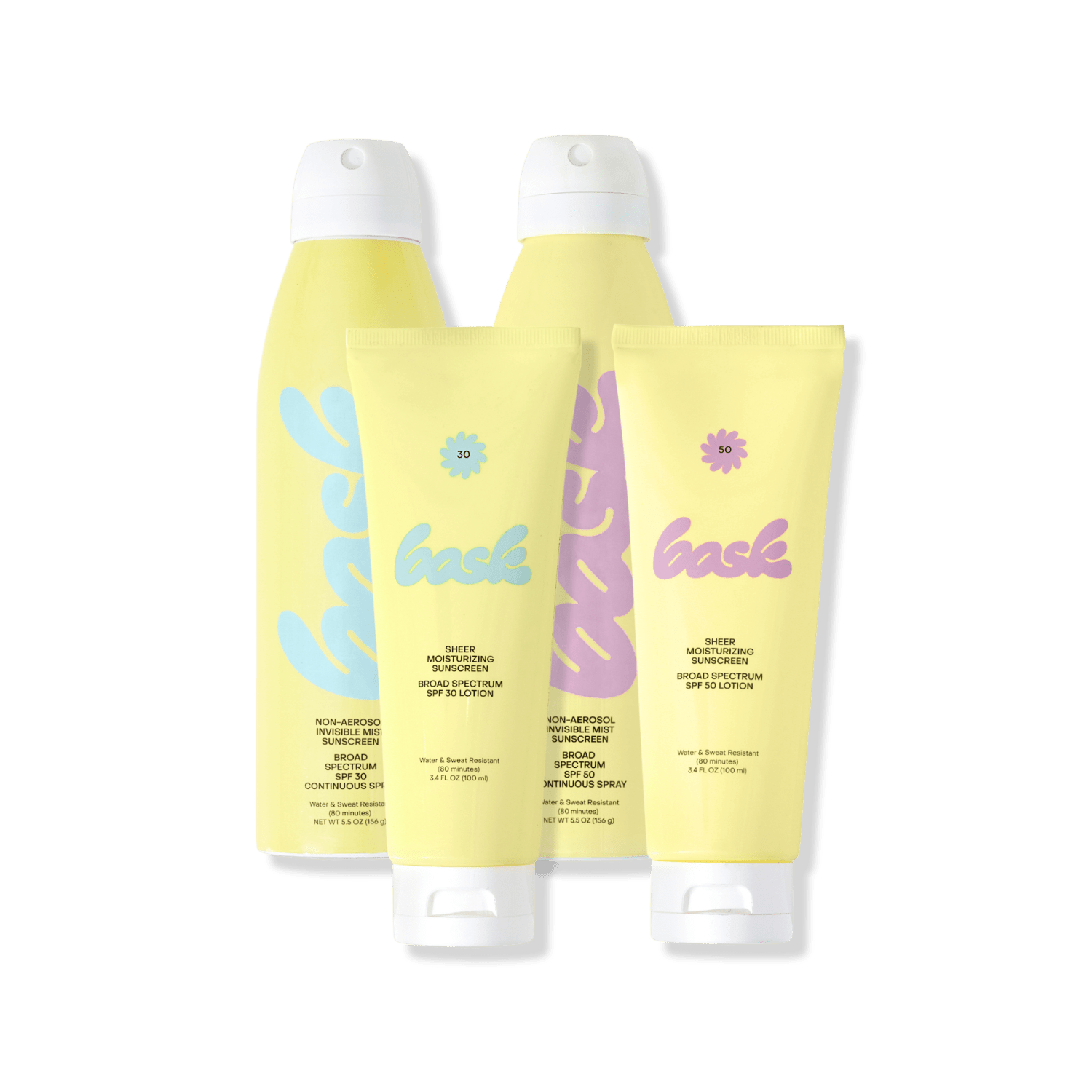 For a limited time only, save $20 on this brand new bundle of all Four of Bask's award-winning formulas. The Bask Suncare core line collection includes: