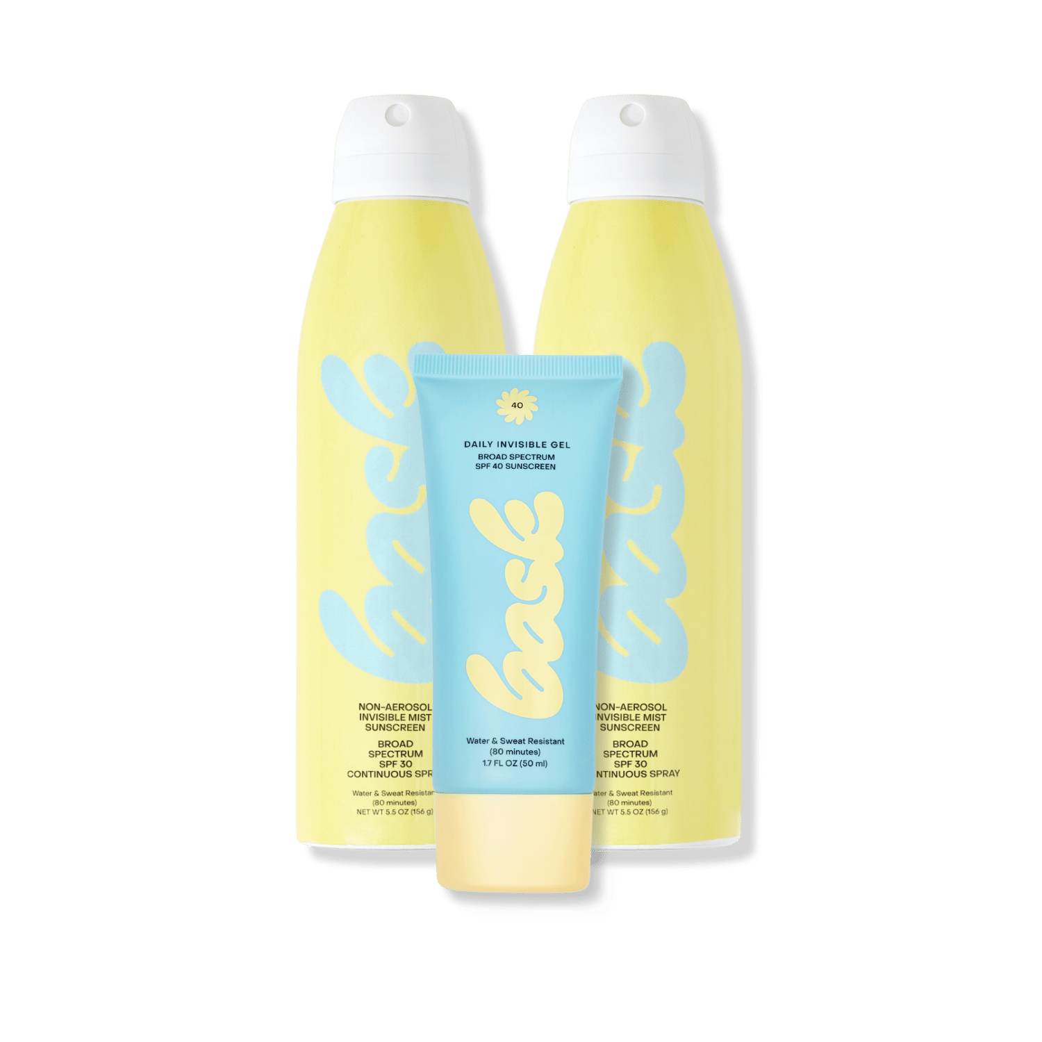 NEW - save 10% when you purchase Daily Invisible Gel SPF 40 for your face and Non-Aerosol Invisible Mist in SPF 30 or 50 for your body. These 3 together will keep you protected from head to toe, and on the go.