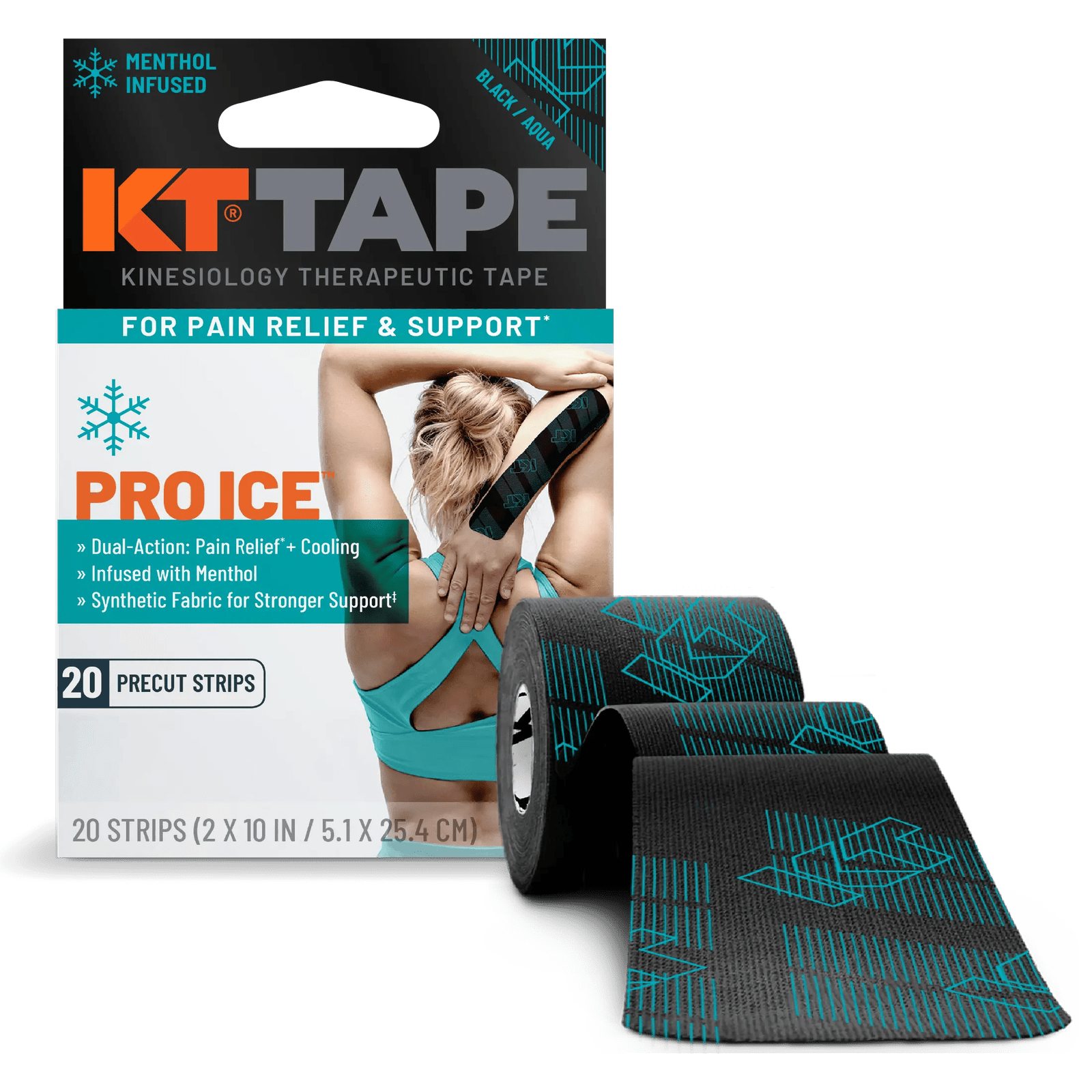 Introducing KT Tape® Pro Ice™ – the ultimate solution for dual-action: pain relief + cooling. Crafted with cutting-edge technology and designed for athletes like you, KT Tape® Pro Ice™ combines the reliability of the long-lasting KT Tape Pro kinesiology tape you know and trust, with the power of fast-acting menthol for effective dual-action: pain relief + cooling and unparalleled support and comfort.