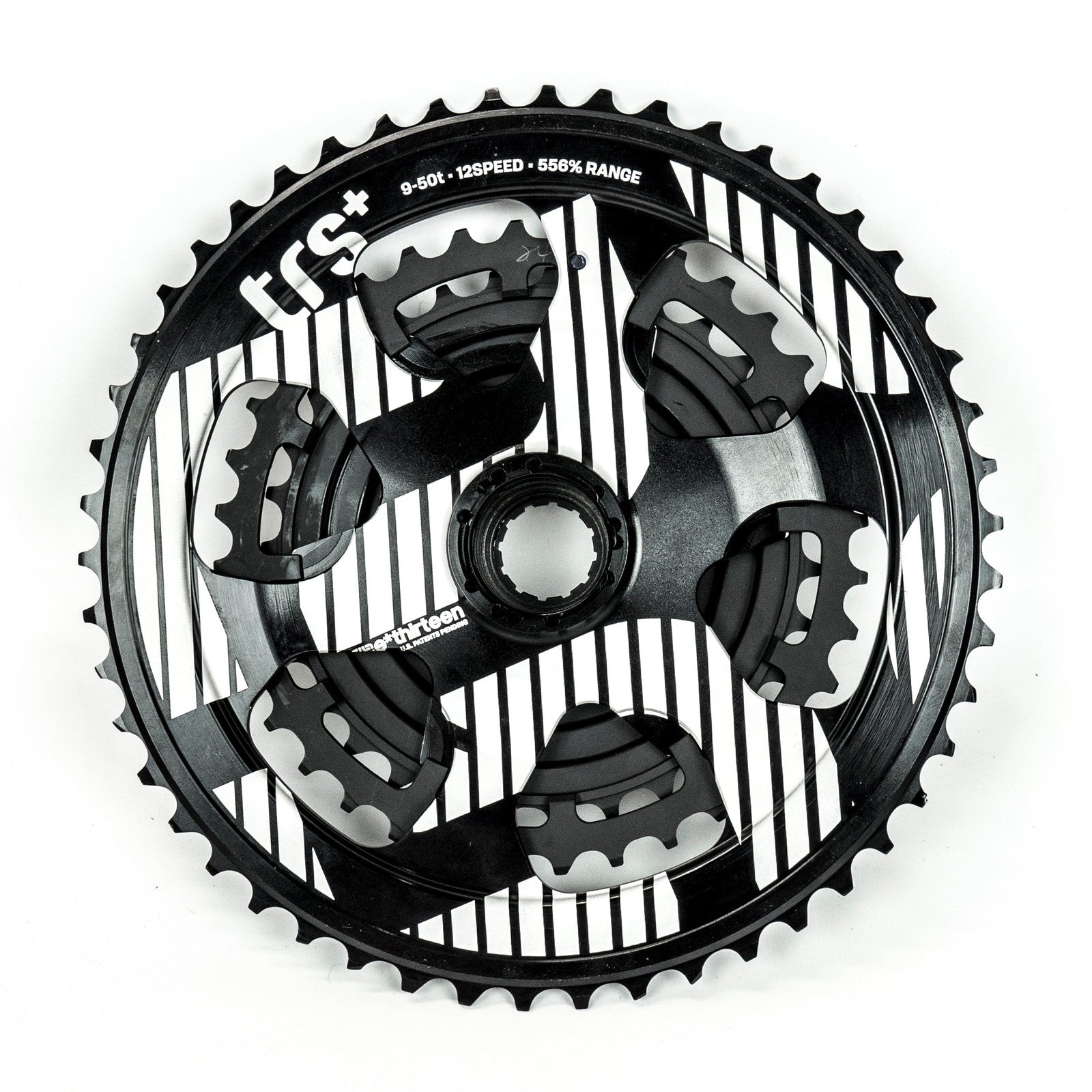 The TRS+ Cassette plugs directly into SRAM™ Eagle™ Mechanical and Shimano™ XTR™, XT™, and SLX™ 12sp drivetrains. Its exclusive 9T sprocket allows you to run a smaller chainring, enhancing ground clearance and reducing weight.