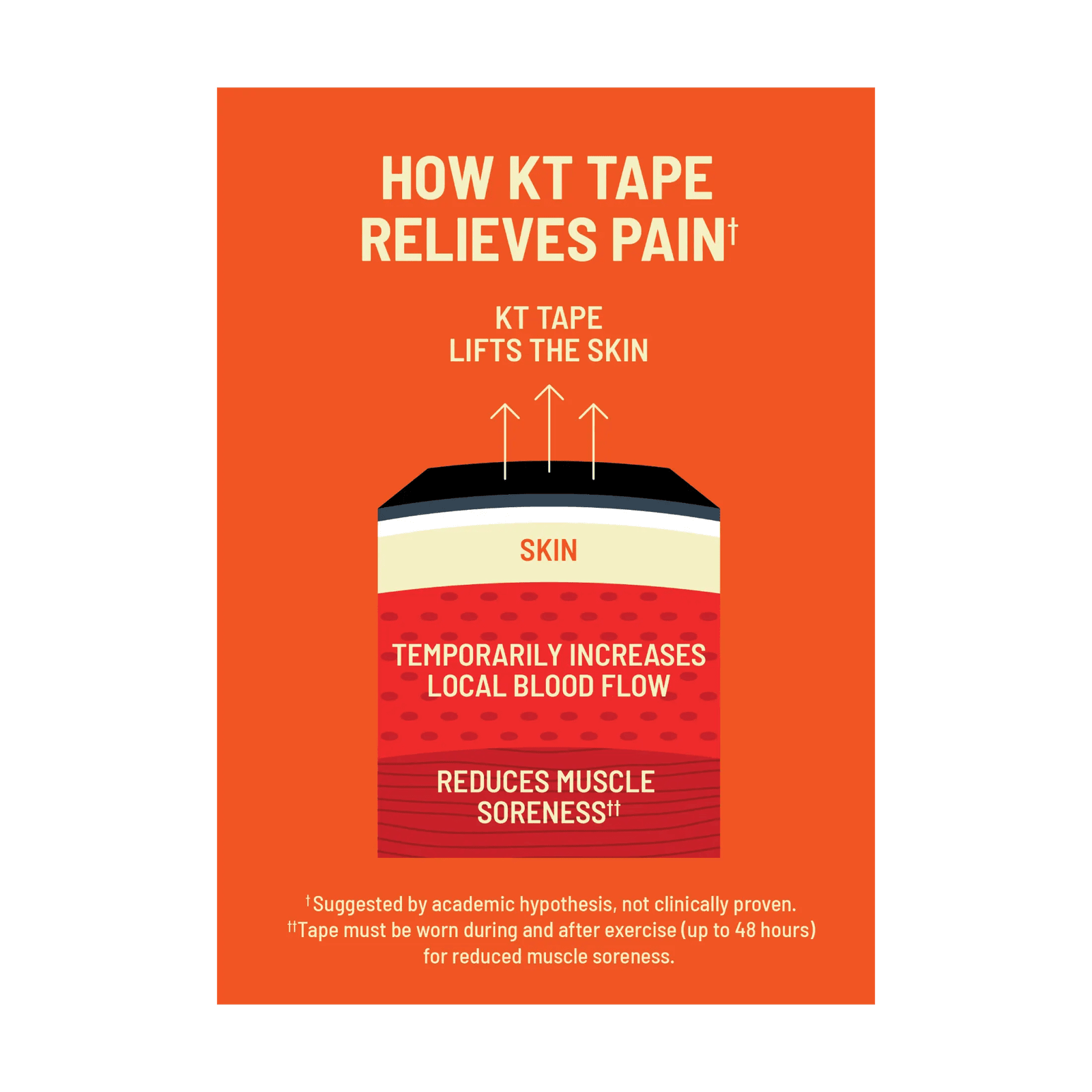 KT Tape Soothe™ is made from breathable cotton fabric tape, purpose-built to move with you, while increasing blood flow and reducing pain or muscle soreness.* For anyone who wants to be active – no matter if it’s around the house, pushing for weightlifting PRs, running your first half marathon, or simply looking for a soothing therapeutic tape to complement your muscle knots physical therapy – KT Tape Soothe™ checks all the boxes from pain-free performance* to relaxing recovery.