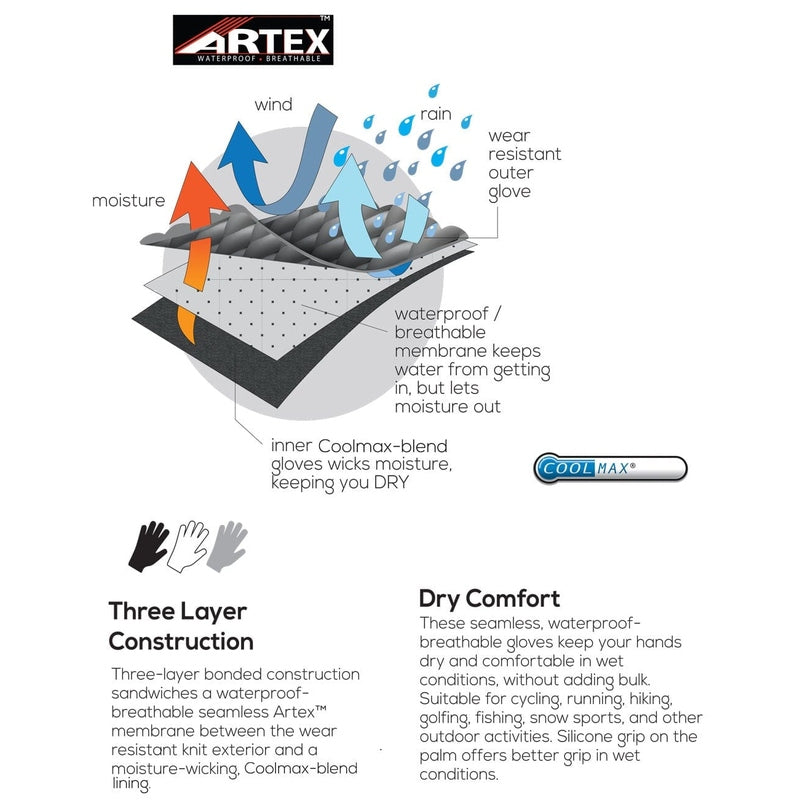 Our most popular waterproof gloves! Ideal for cool and wet outdoor activities, these lightweight and versatile gloves keep the chill off without slowing you down. Conductive yarn at the tip of the index finger and thumb allows for easy operation of touchscreens on smartwatches, phones, and more.
