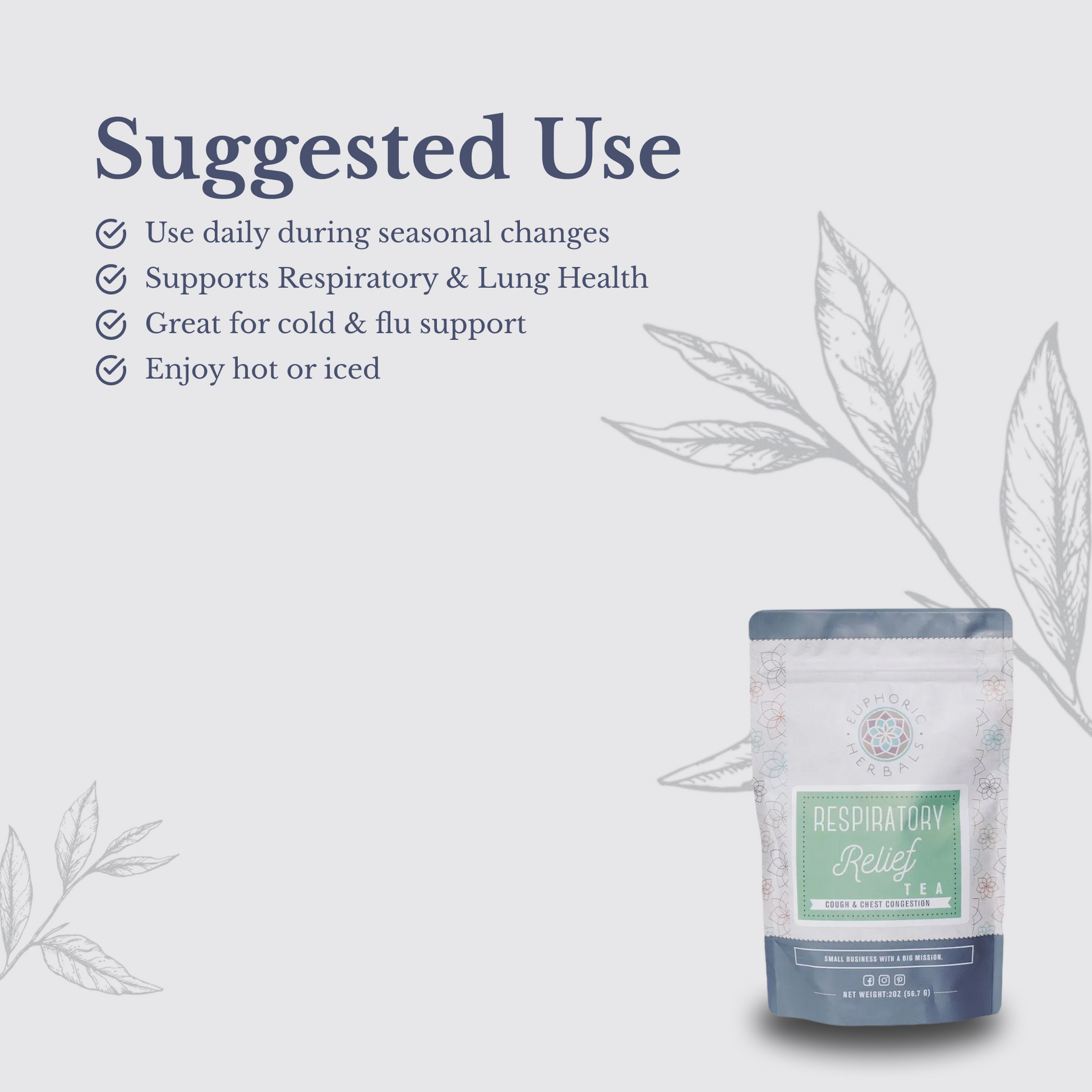 A soothing blend carefully crafted to provide natural support for your respiratory system. Packed with a harmonious combination of premium botanical ingredients, this delightful tea offers a comforting and revitalizing experience.