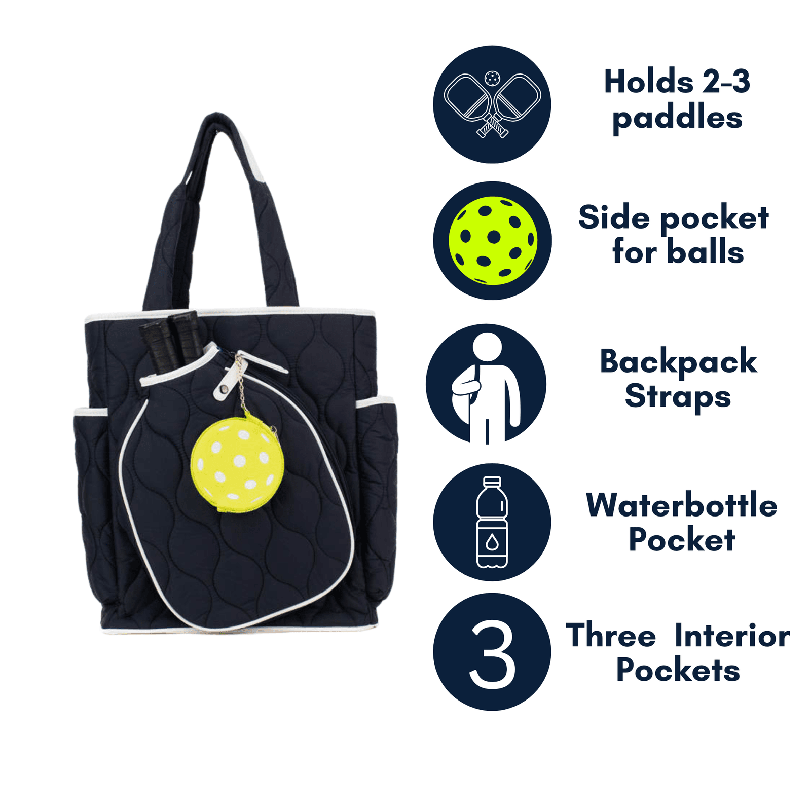 THIS IS THE ONE! Pickleball must-have, most stylish, most functional pickleball bag ever! Feeling like you need room for extra paddles, two water bottles, snacks, carry as a tote, change your mind, carry as a backpack? It's all in one and only from Queen of the Court. All bags include the cutest pickleball coin purse.
