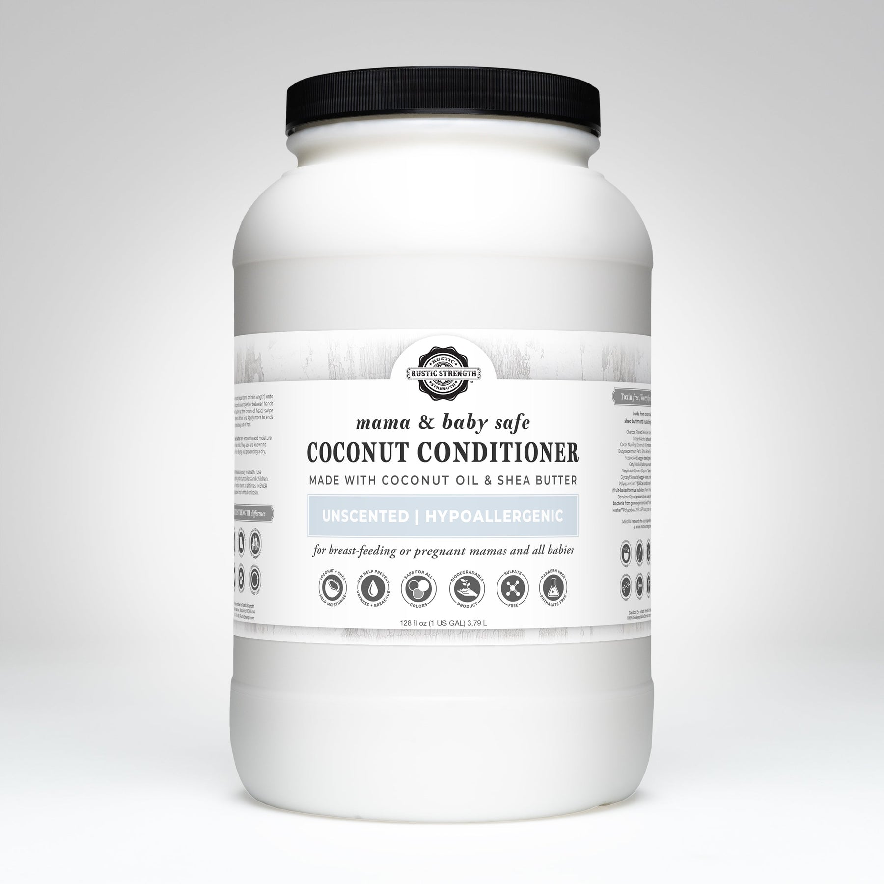 Mama + Baby Safe | Rustic Strength Coconut Conditioner is made with high-purity and concentrated active plant-based ingredients and is less likely to irritate even the most sensitive skin. It is safe for pregnant or breastfeeding mamas as well as babies when no scents are added. That's why we called this line "Mama + Baby Safe"