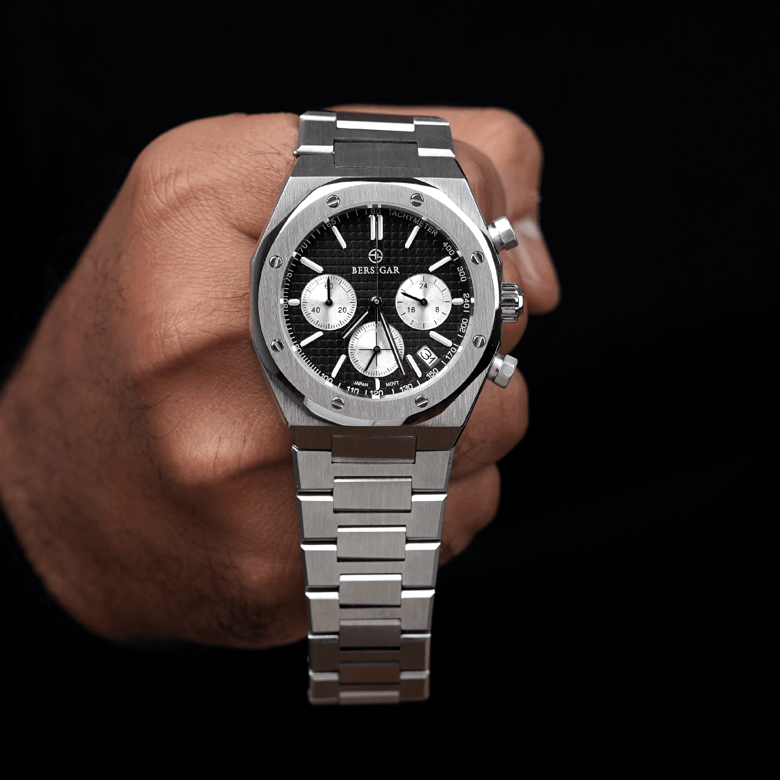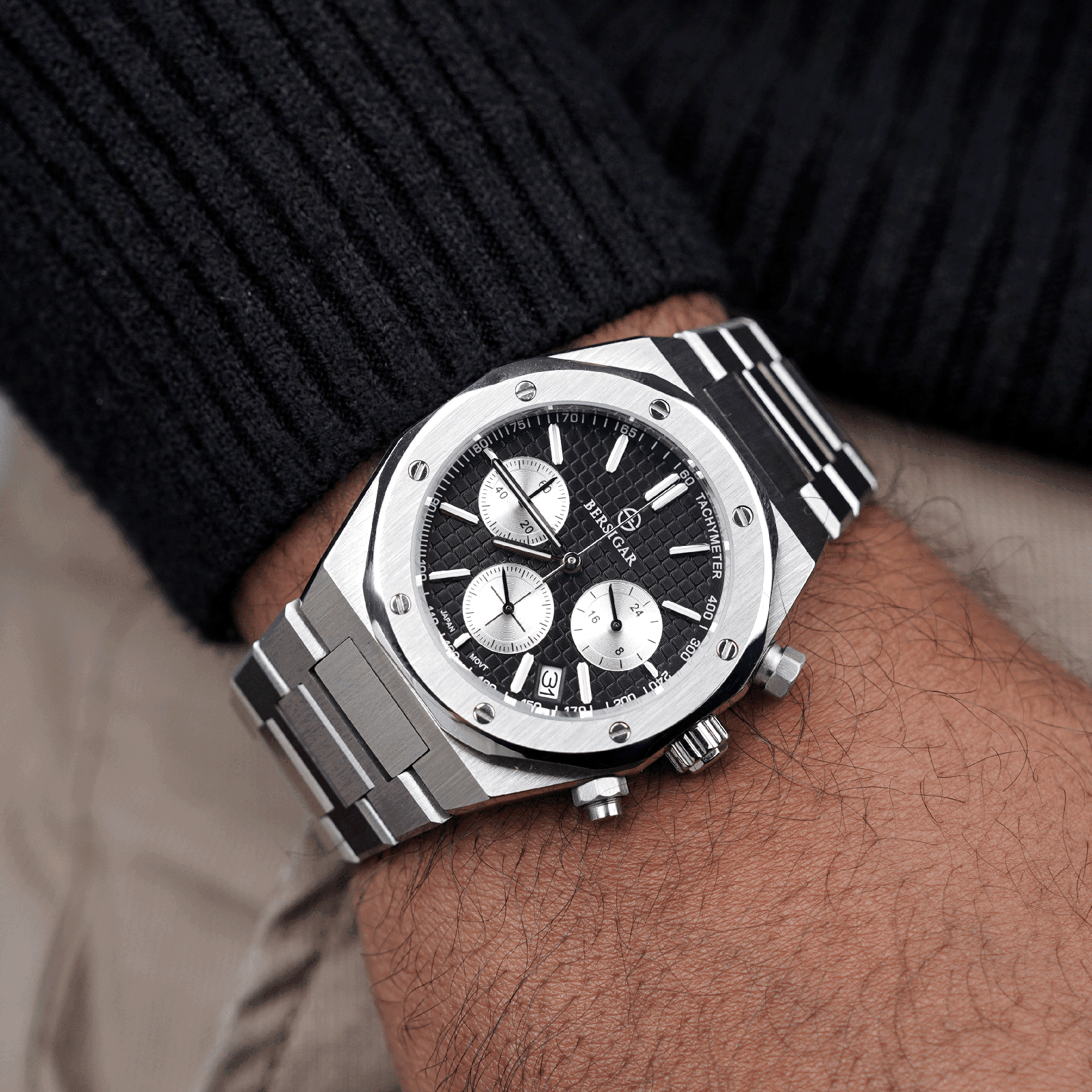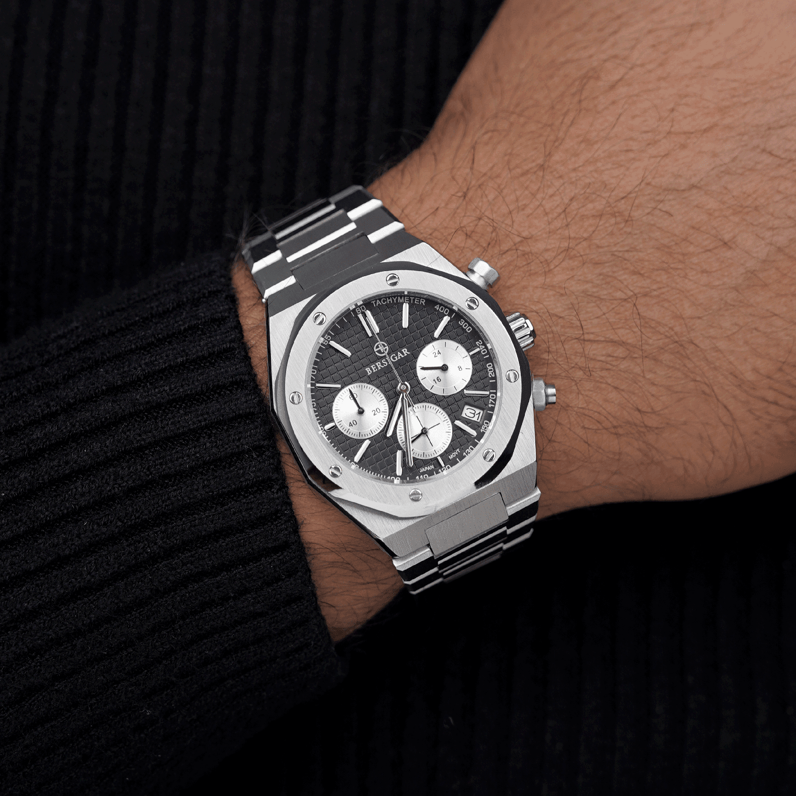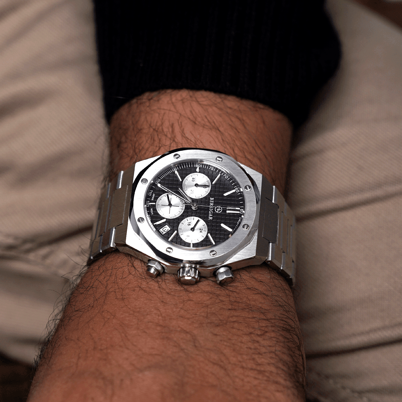 Bersigar Allegro 1707 - Bersigar Watches. Premium materials and casual design, Sapphire dial window, full 316L stainless steel construction with screw-down crown, transparent case back, solid and flexible watchband with classic fold-over clasp.