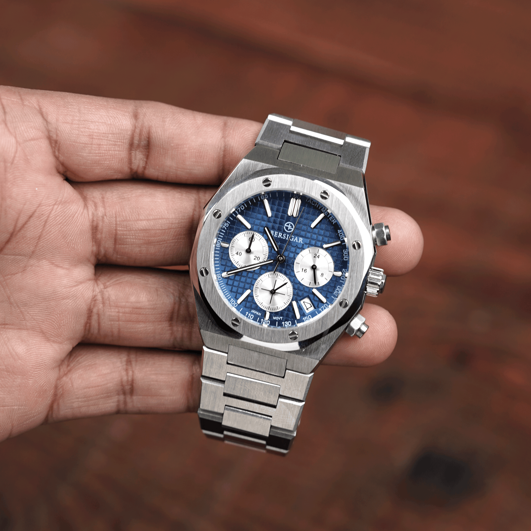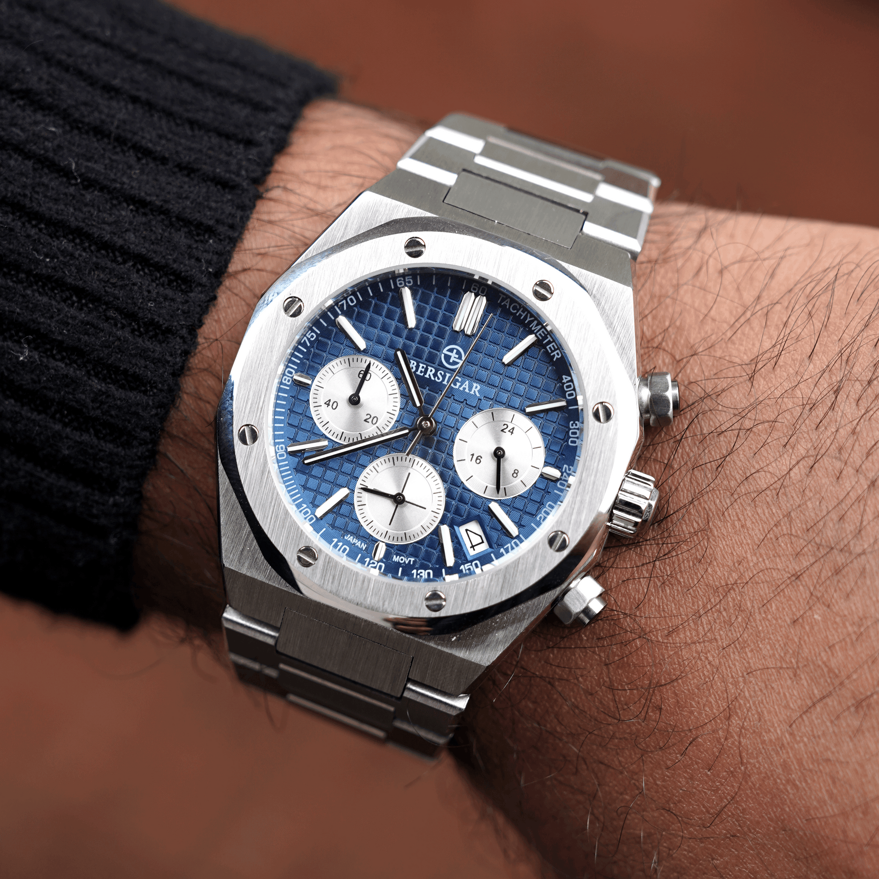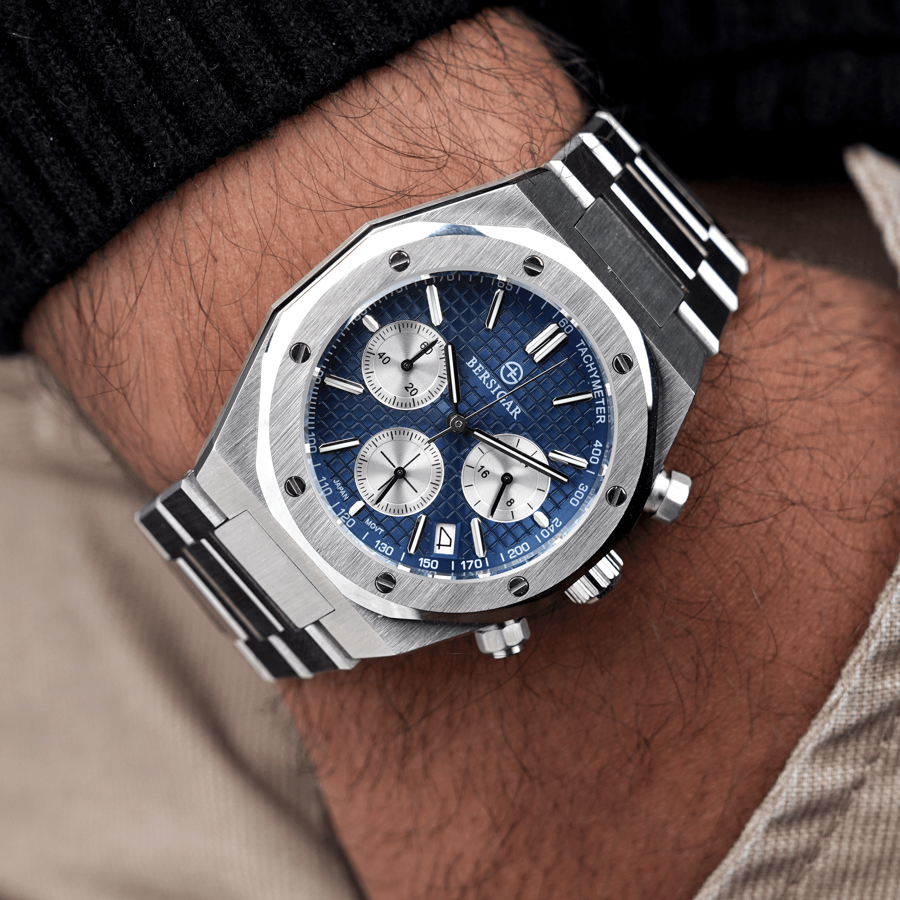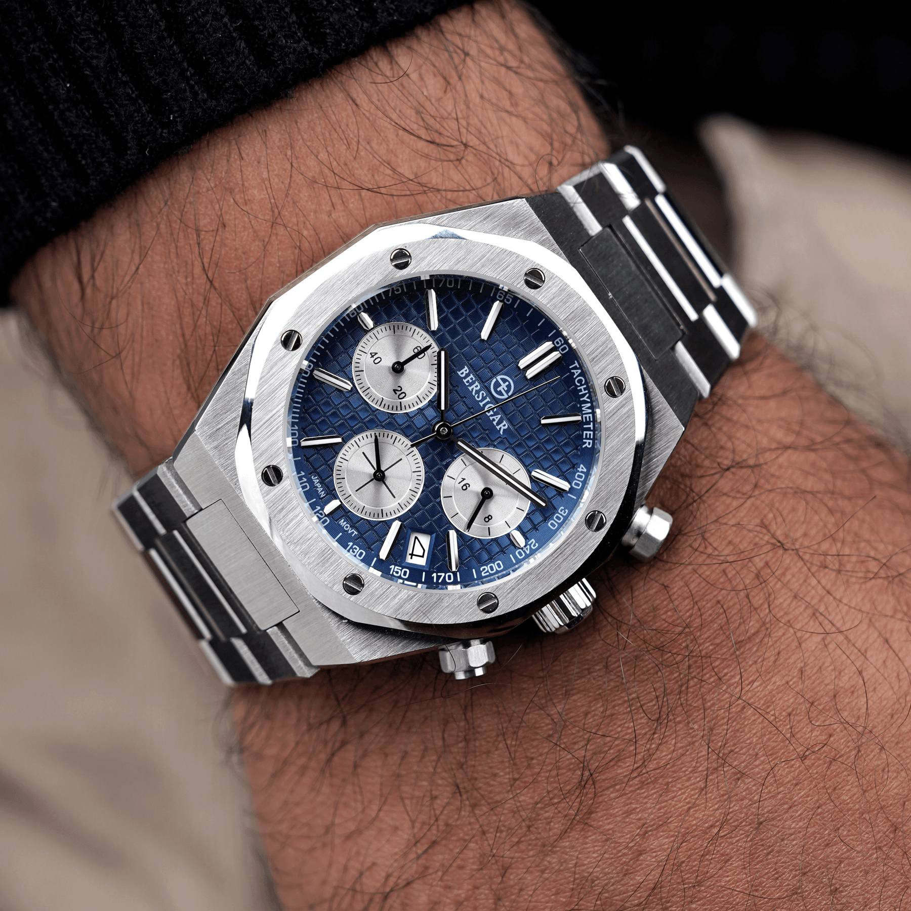 Bersigar Allegro 1707 - Bersigar Watches. Premium materials and casual design, Sapphire dial window, full 316L stainless steel construction with screw-down crown, transparent case back, solid and flexible watchband with classic fold-over clasp.