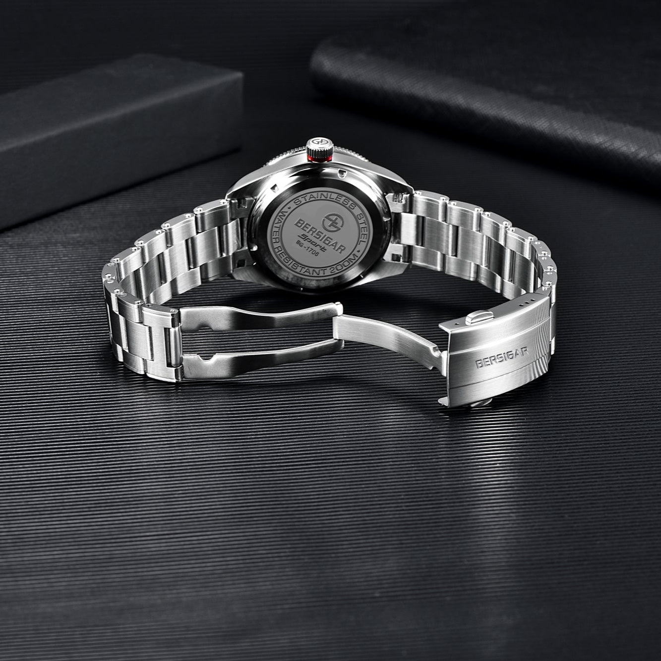 Bersigar luxaura 1706 Premium materials and casual design, Sapphire dial window with AR coating, stainless steel construction with screw-down crown, solid case back, solid and flexible watchband with a classic fold-over clasp.