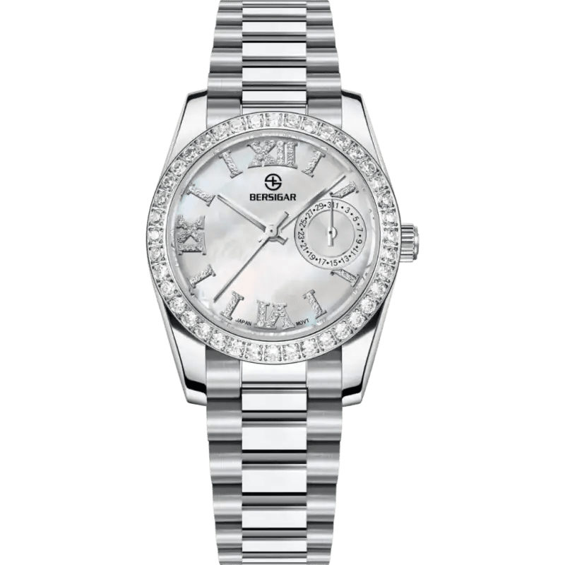 Introducing Bersigar Luxuara 1776 for Women, the ultimate timepiece for the modern woman. This watch features a stunning mother of pearl and luxurious design, making it the perfect accessory for any outfit. With a precise and reliable mechanism, this watch is both functional and stylish, allowing you to stay on track and look great. Elevate your wardrobe with Bersigar Luxuara 1776 for Women.