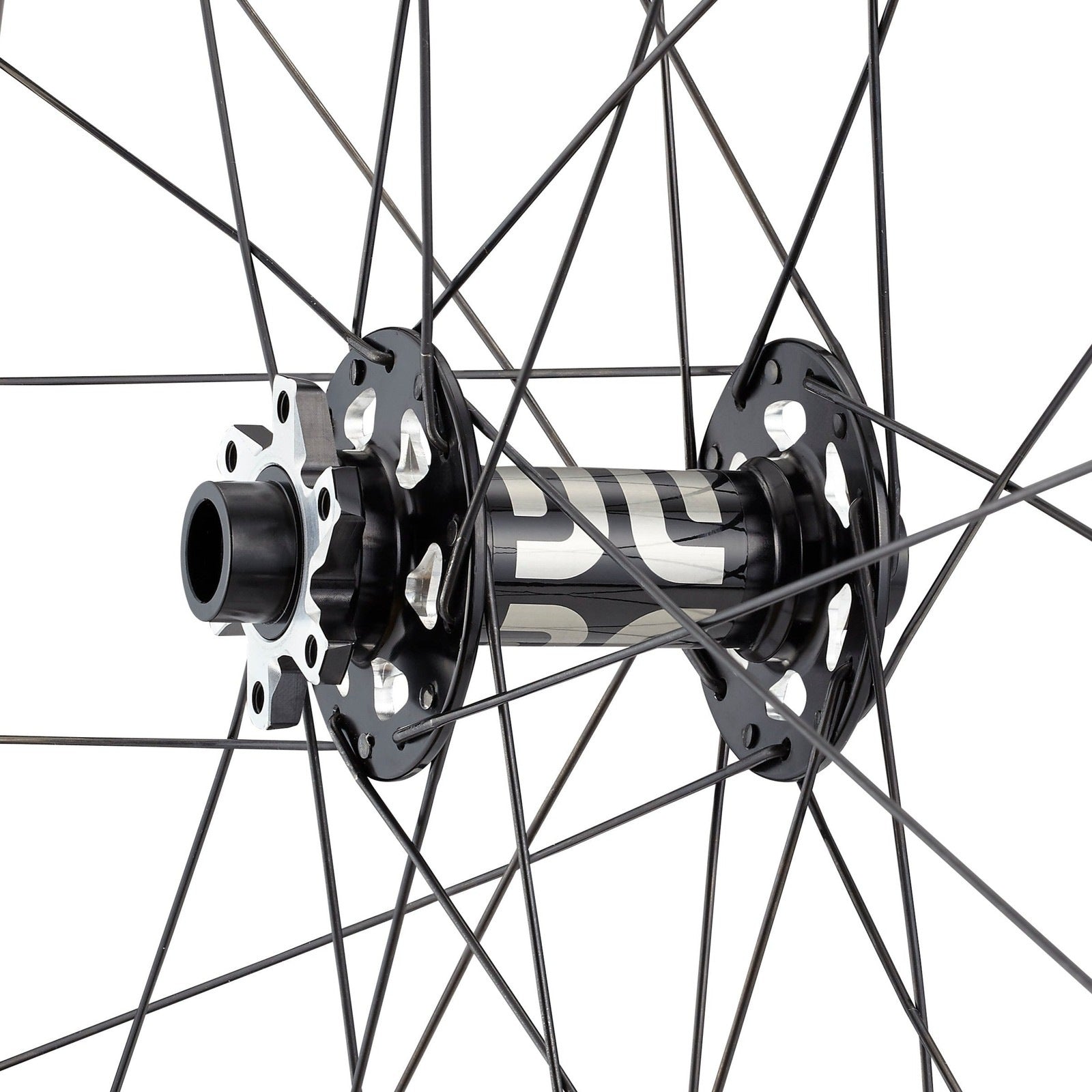 The asymmetric 30mm inside-width rims feature a low height profile to increase compliance, absorb impacts, reduce fatigue, and improve traction. The asymmetric profile results in near-equal spoke tension between the drive and non-drive sides, resulting in a stronger wheel and more consistent ride characteristics. The valve dock interface ensures a good seal point for your tubeless valves. These features combined with double-butted spokes and alloy nipples make for a controlled lively ride feel.