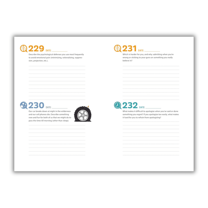 It only takes a few minutes a day to deepen your bond with your partner with this modern couple's journal. Covering everything from the lighthearted to the heartfelt, this book will strengthen your connection as you explore engaging prompts over the course of a year.