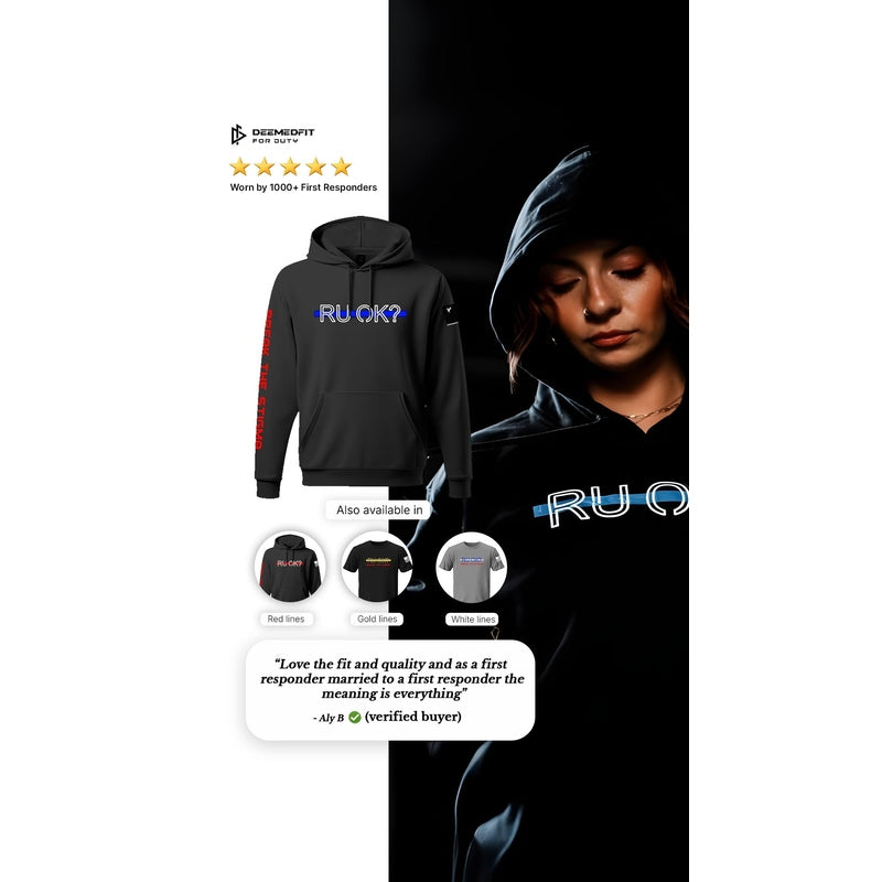 At DeemedFit, we believe in the power of clothing to spread awareness and make a difference. With this hoodie, we aim to highlight the importance of mental health in the first responder community and break the stigma surrounding it.