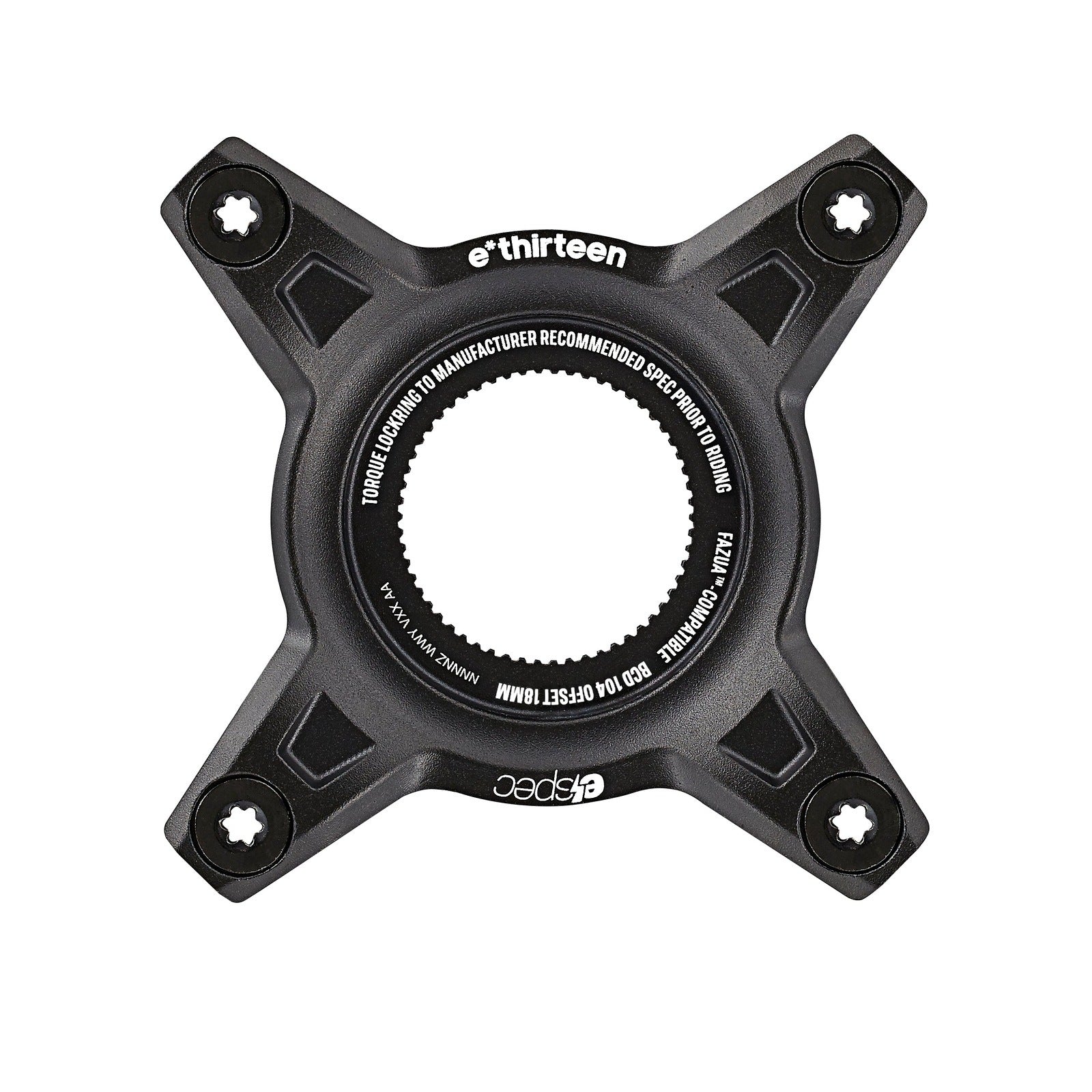 Upgrade your e-bike with e*thirteen's 104 BCD Spider, designed for seamless compatibility and efficiency. This spider enables the use of any 4-bolt standard chainring, offering a practical solution for cost-effective and eco-friendly chainring replacements. Made from durable 6-series alloy, it balances lightweight strength with the flexibility to pair with both long-lasting steel and lightweight alloy chainrings. Compatible with Bosch Gen4, Fazua Ride 60, Shimano EP8, and TQ HPR50 systems, it's the ideal choice for enhancing your e-bike's performance.