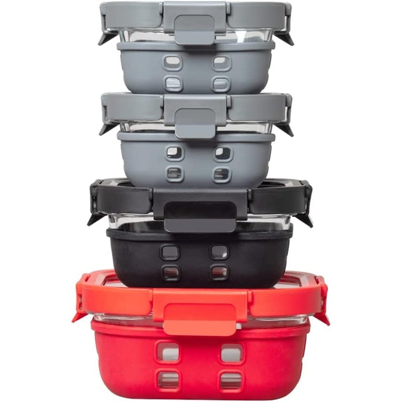 Each container in this set comes with a removable silicone sleeve that prevents slipping and serves as a safe place to hold the container while it's hot.