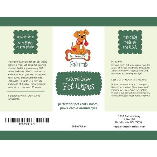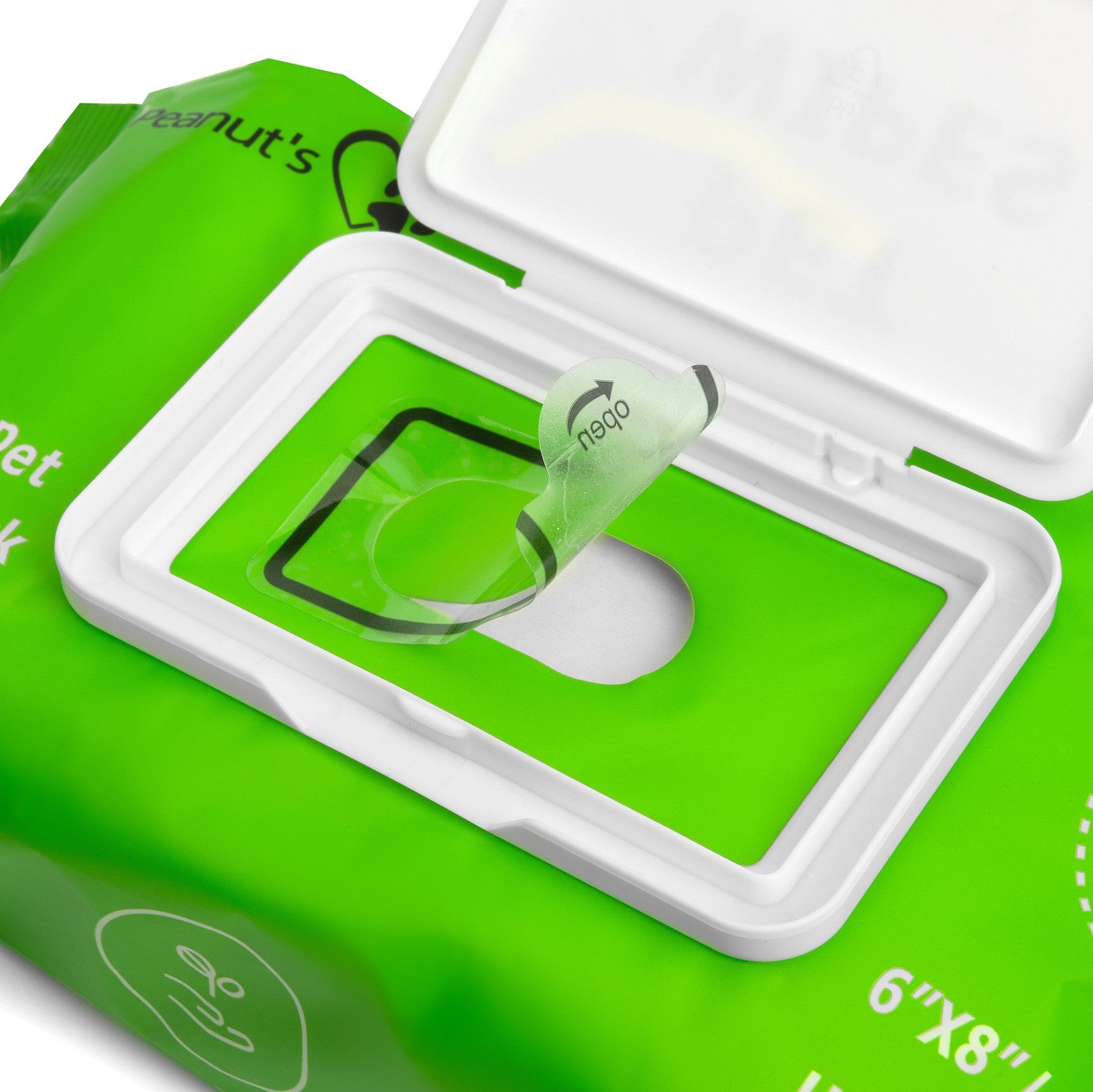 Mr. Peanut's Naturals Plant Based, Flushable, Compostable, Unscented Pet Wipes, 160 Count, Larger 8x6" Size