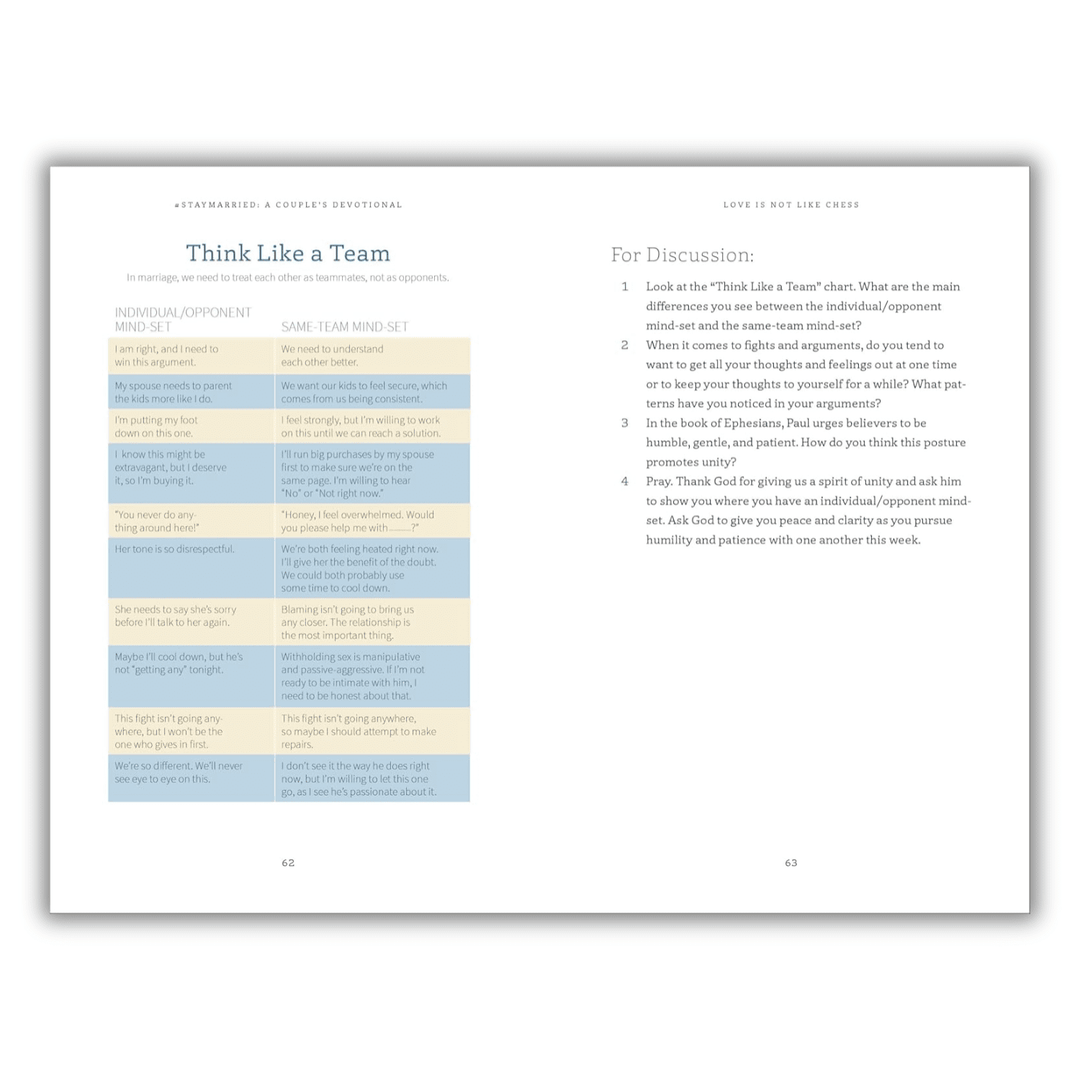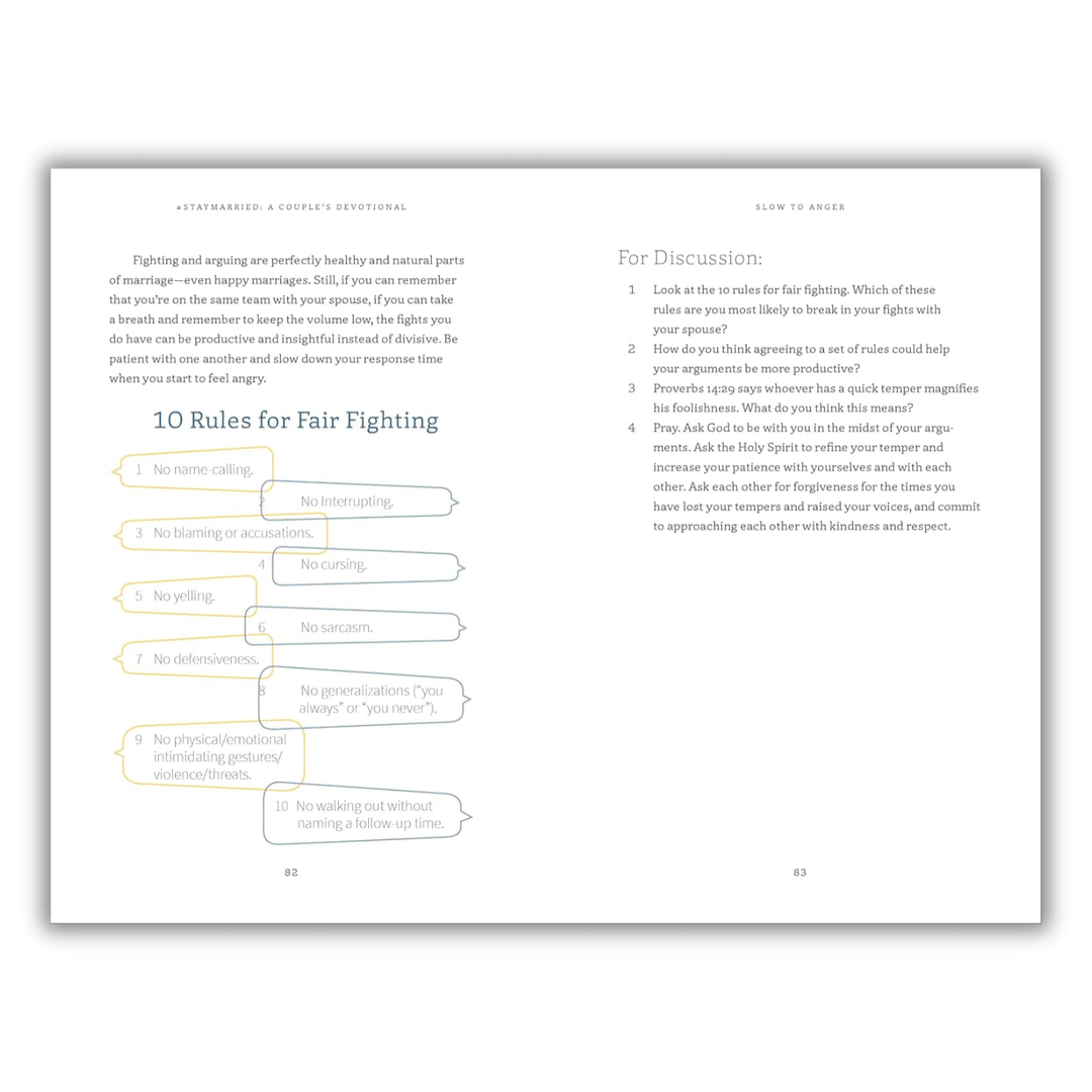 This spiral book would be the perfect gift for the couples in your life. When searching for the best marriage book, #Staymarried is a great choice. The spiral bound version of #Staymarried is great for those who really use and abuse their books. Our proprietary binding helps you lay this title flat for easier reading and handling. If you’re looking for marriage books then the spiral bound version of #Staymarried is the way to go.