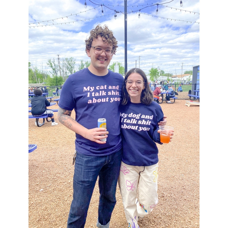 Looking for a fun and sassy way to show your cat that you're the boss? Look no further than our "Talk Shit - Cat Edition" crewneck or t-shirt! This item is based off of our best-selling talk shit human apparel, and we've finally gotten around to making a top-requested cat edition! This item is sure to get a few laughs (or maybe even some hisses) from your feline friends.